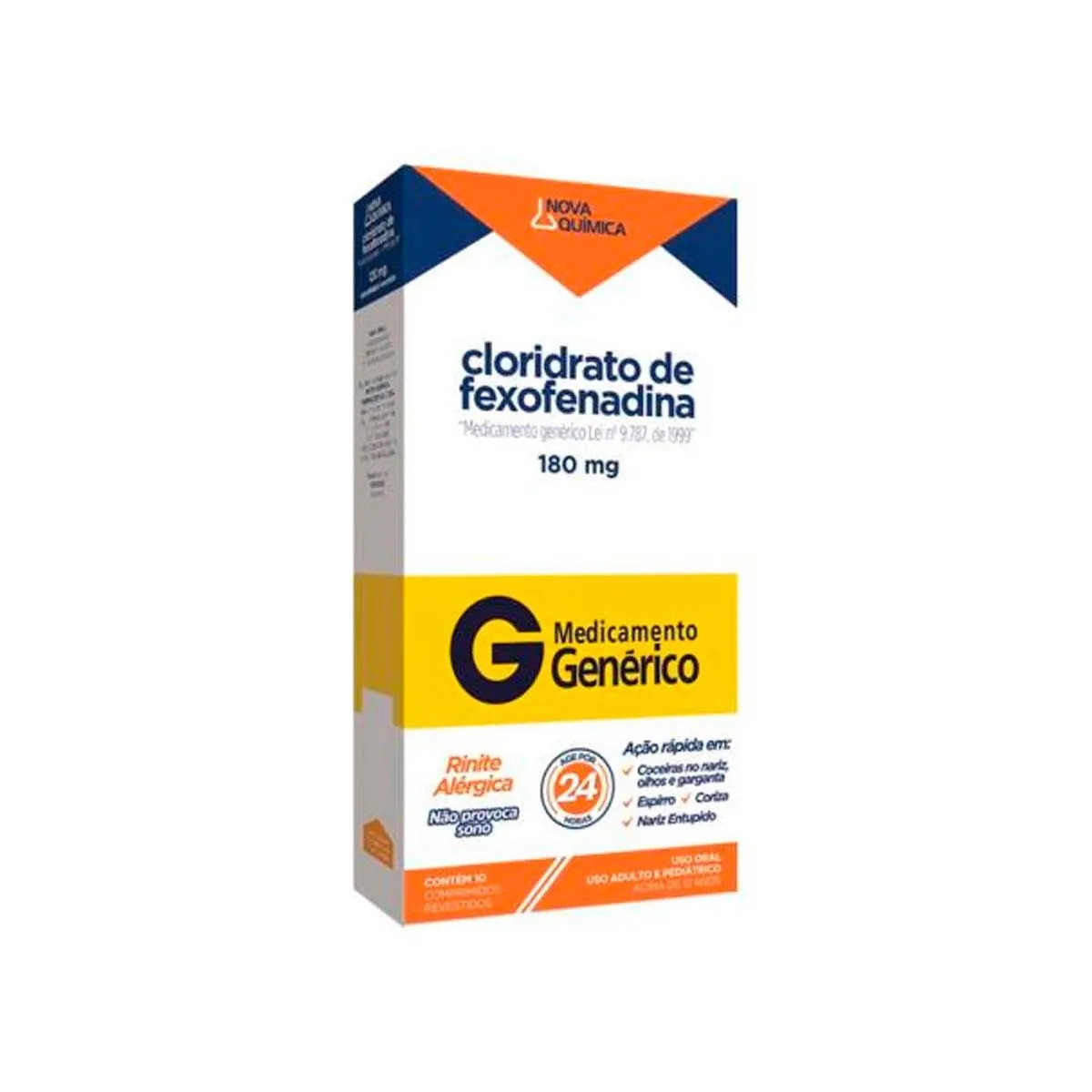 O Cloridrato de Fexofenadina 180mg Genérico Nova Química é um medicamento antialérgico de segunda geração, indicado para o alívio dos sintomas da rinite alérgica e da urticária. Sua fórmula age como um potente antagonista dos receptores de histamina H1, proporcionando alívio rápido e prolongado de espirros, coriza, coceira no nariz e olhos, além de placas e coceiras na pele. Por ser não sedativo, permite o uso durante o dia sem comprometer a atenção e o desempenho.