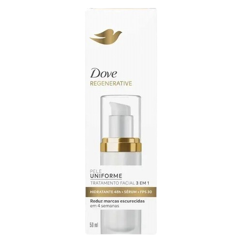O Sérum Facial Dove Regenerative FPS 30 é um tratamento 3 em 1 que combina proteção solar, hidratação e uniformização da pele. Sua fórmula com Tecnologia B3 Pro ajuda a proteger contra os danos do sol, reduz marcas escuras em até 4 semanas e reforça a barreira protetora da pele. Além disso, promove firmeza e hidratação, inibindo a perda de colágeno.