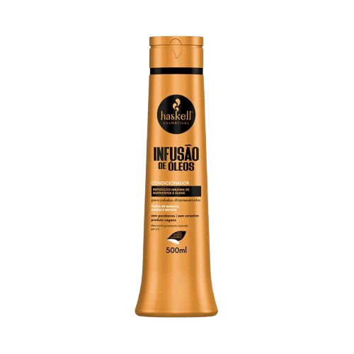 O Condicionador Haskell Infusão de Óleos 500ml é ideal para cabelos ultrarressecados, oferecendo nutrição ultraprofunda e reposição de lipídios e nutrientes perdidos. Sua fórmula é enriquecida com óleos poderosos, como óleo de marula, óleo de argan e óleo de monoi, que ajudam a selar as cutículas, reduzir a porosidade e proporcionar brilho intenso aos fios.