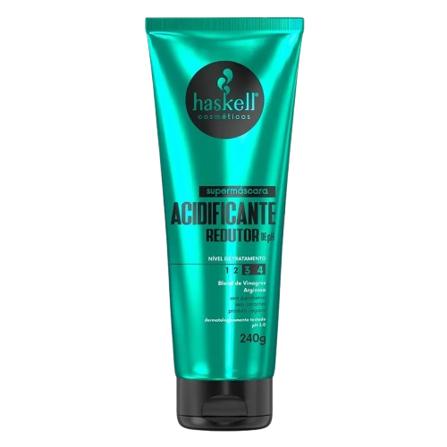 O Haskell Supermáscara Acidificante Redutor de pH 240g é um tratamento capilar desenvolvido para equilibrar o pH dos fios expostos a processos químicos, ajudando a recuperar cabelos porosos e devolver suas características saudáveis.