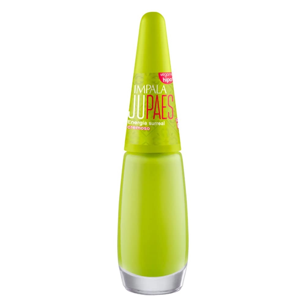 O Esmalte Cremoso Impala Ju Paes Nosso Jeitinho na cor Energia Surreal apresenta um tom vibrante de verde limão, perfeito para quem busca alegria e frescor nas unhas. Sua fórmula cremosa garante aplicação uniforme, secagem rápida e longa duração, proporcionando um acabamento brilhante e impecável.