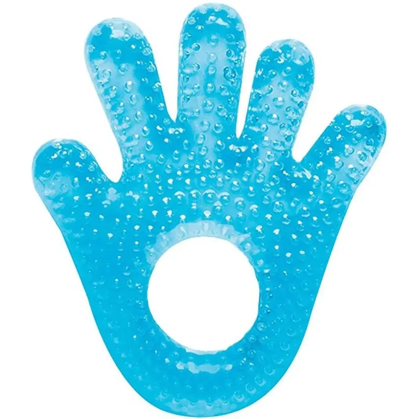 Antes de dar ao bebê, lave o mordedor com água e sabão neutro. Coloque-o na geladeira por alguns minutos (não no congelador) para resfriar. Ofereça ao bebê para que ele morda e alivie a dor.